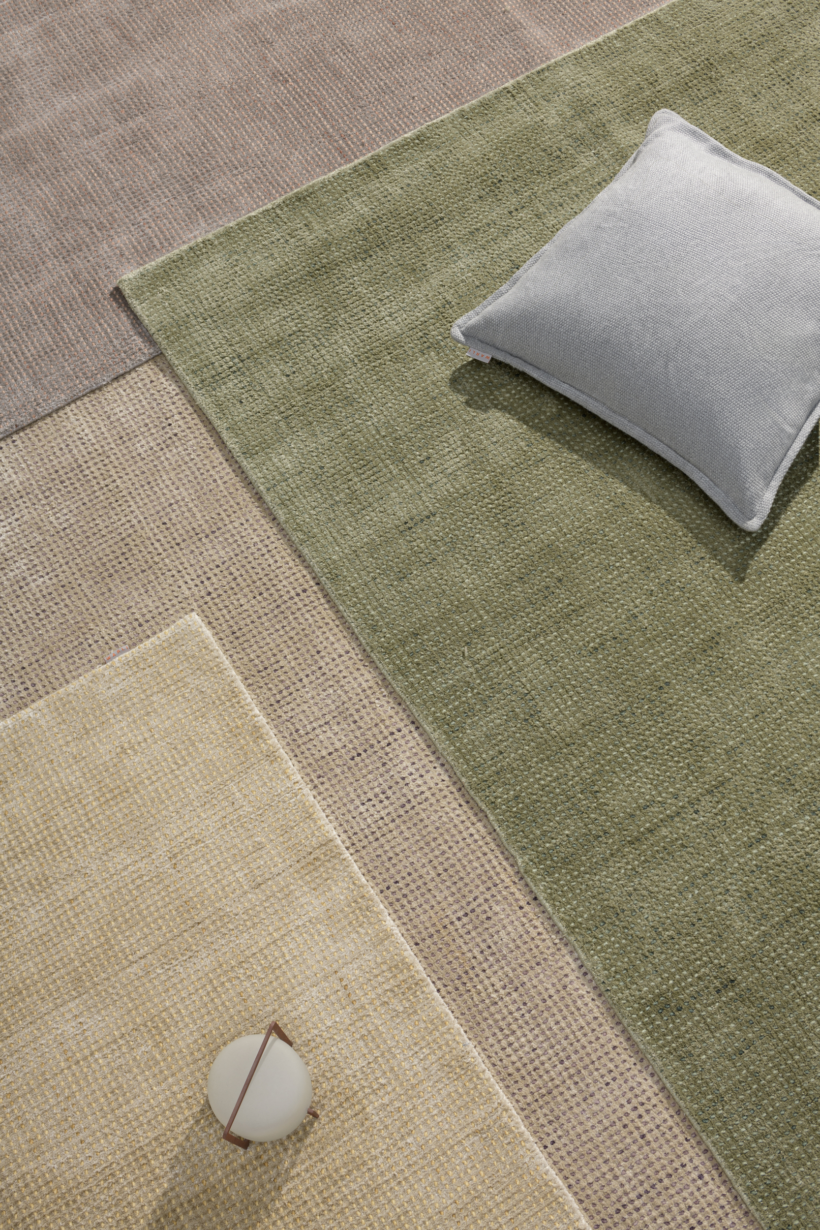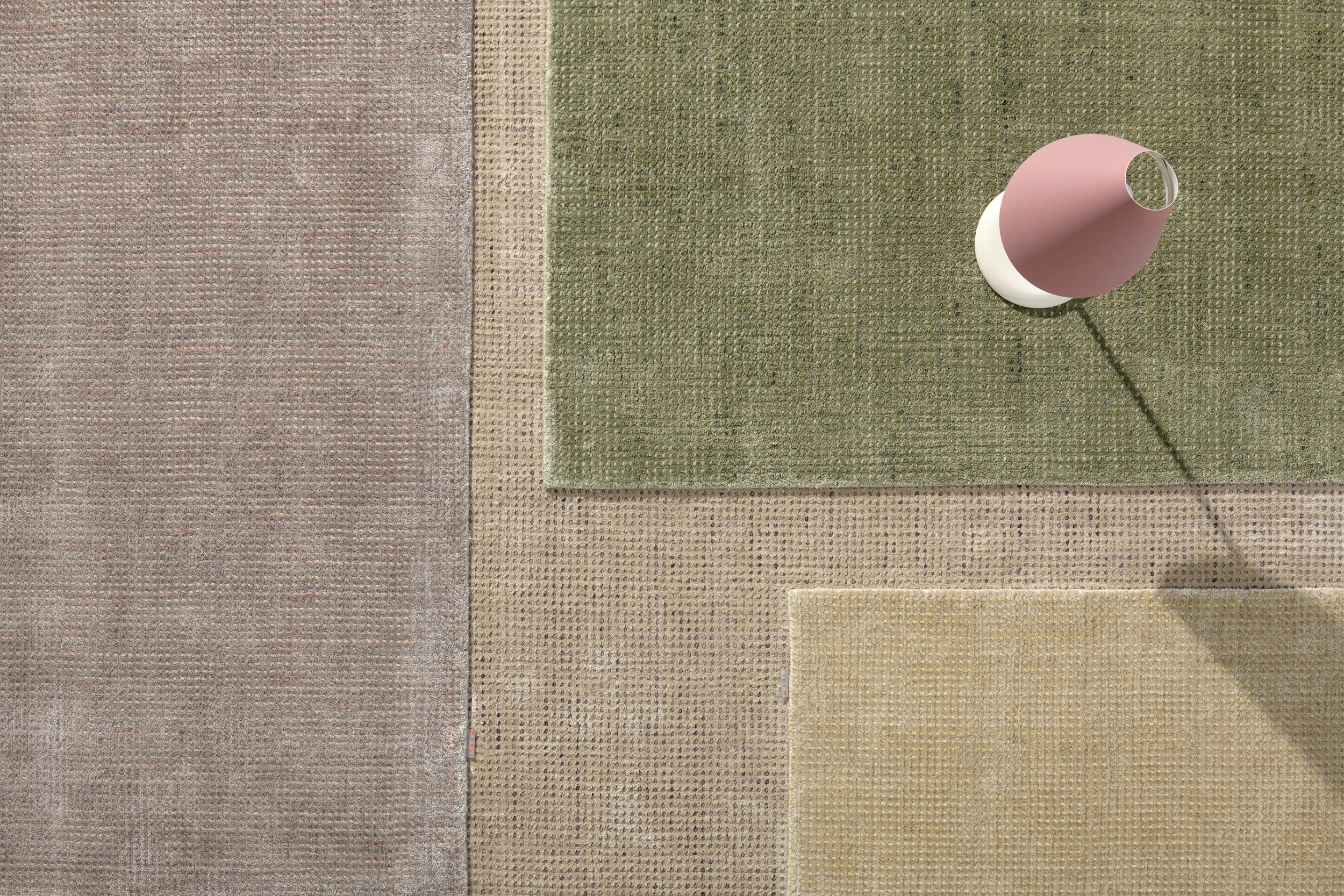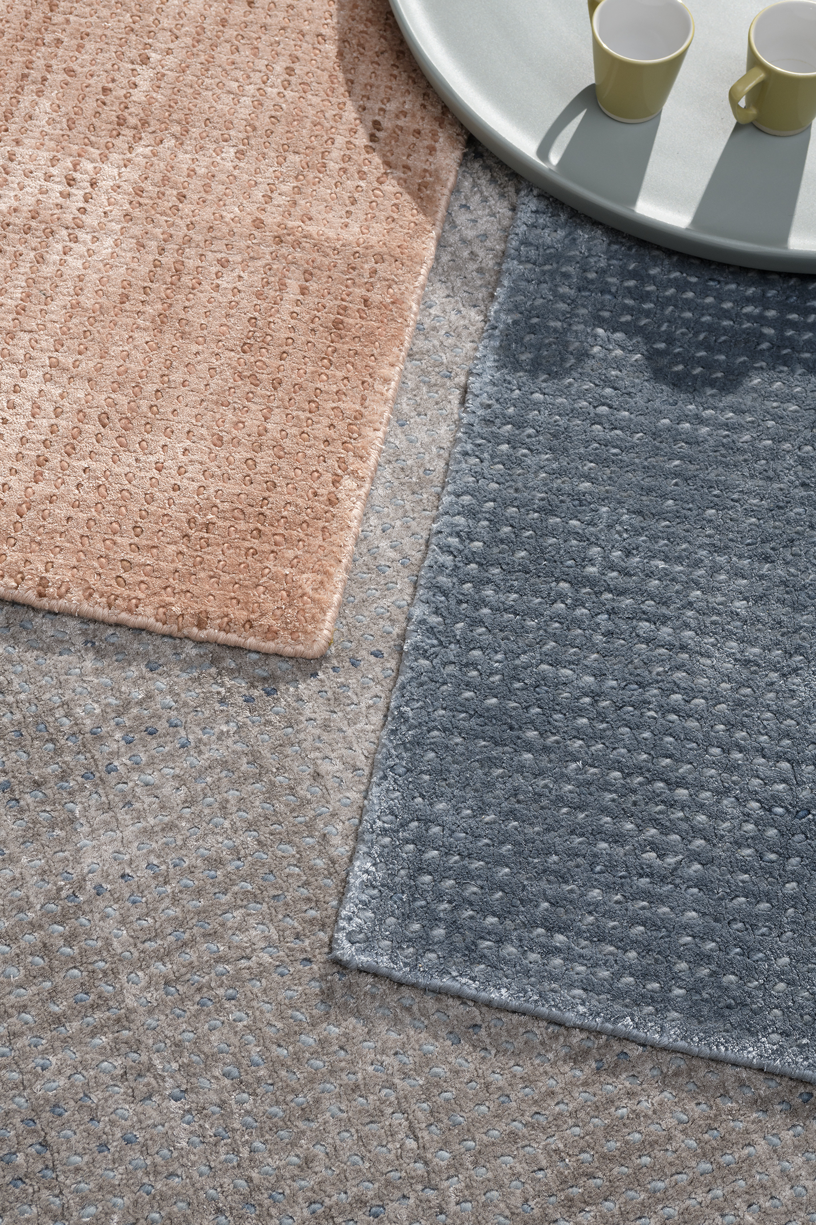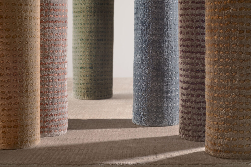 Protagonista dello spazio è stata la nuova veste di Dots, il tappeto firmato da Paolo Zani, ora evoluto in un sistema completo di progettazione grazie a un inedito ventaglio di combinazioni cromatiche (10 colori in trama e 10 in ordito). Una trasformazione che dimostra come l’heritage artigianale possa dialogare con le esigenze più attuali dell’hospitality e del residenziale di alto livello.