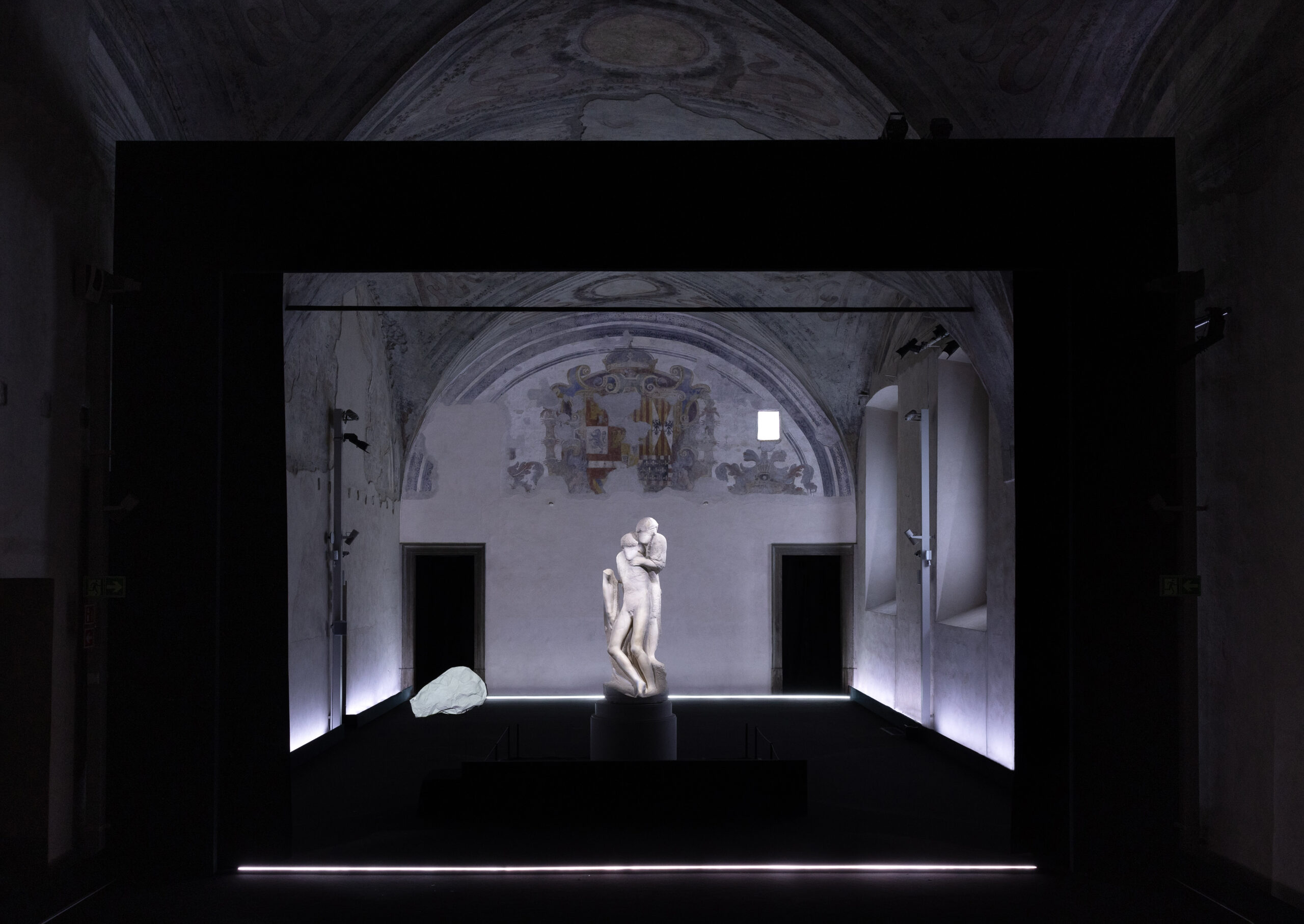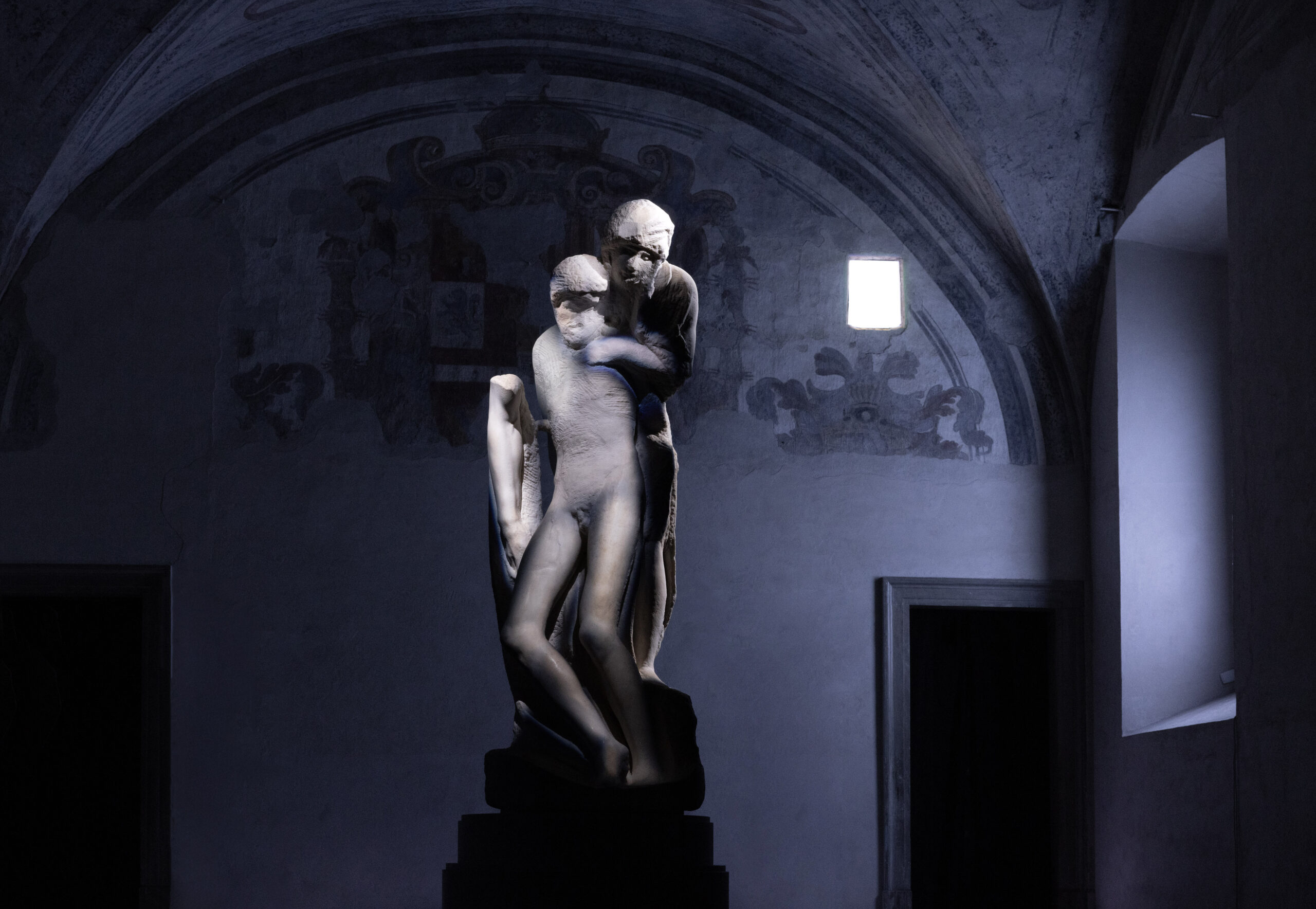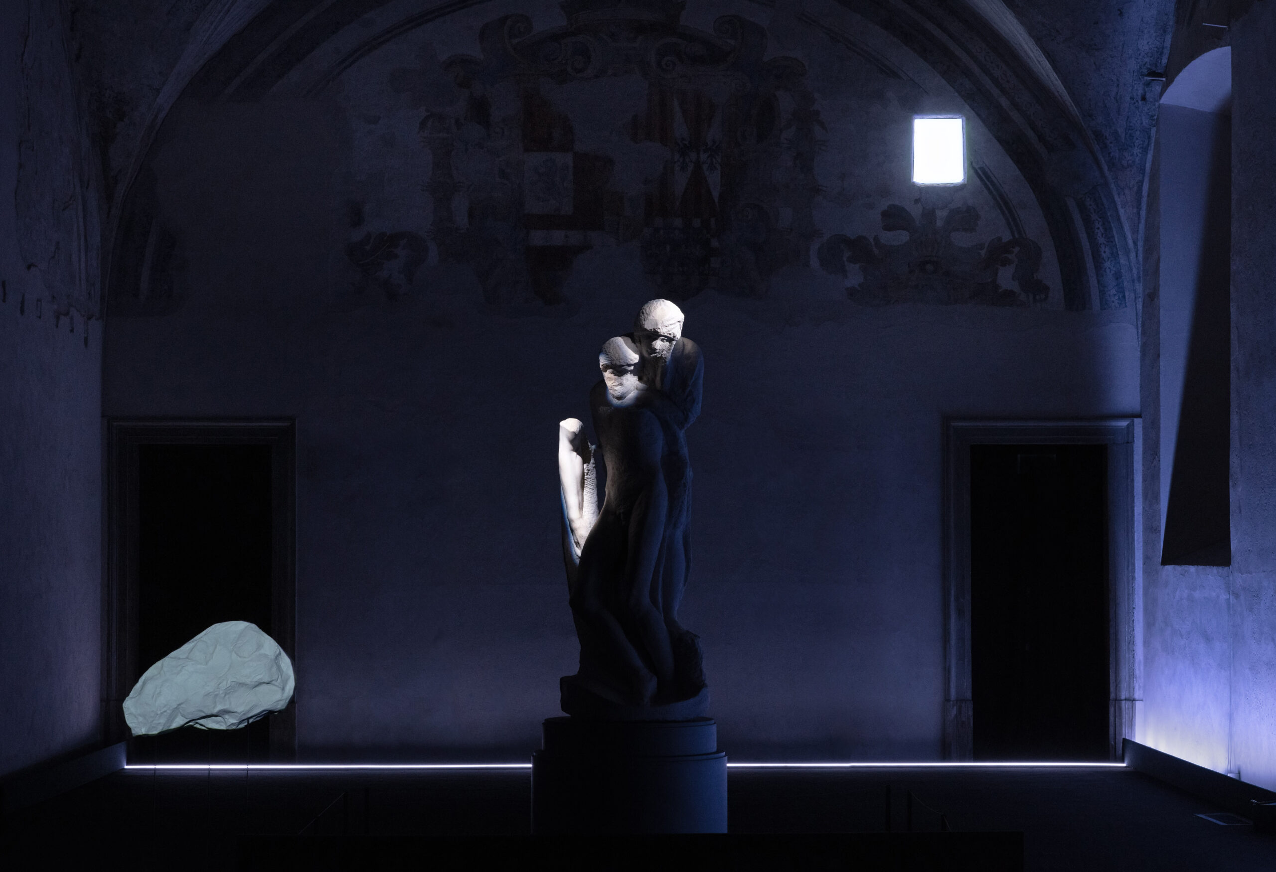 “Mother” si configura come una sequenza di 30 minuti di musica, luci e immagini, progettata per dialogare con la potenza dell'”incompiuto” rappresentato dalla Pietà Rondanini. L’installazione si avvale della composizione “Stabat Mater” del compositore estone Arvo Pärt, una preghiera medievale rivisitata in chiave vocale e strumentale.